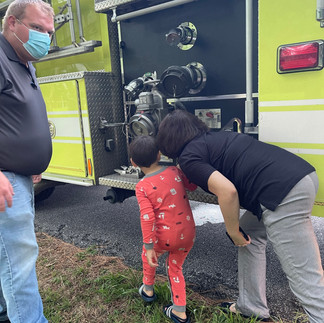 Yesterday Cameron received an awesome surprise. Chief Ryan Bozman of the Princess Anne Fire Department reached out to me on social media after seeing Cam's story and wanted to know if the Fire Dept could deliver him a get-well card. I was excited for Cam - because what boy doesn't love fire trucks and everything that goes along with them? I thought that a few guys would show up with one truck. Little did we know the PAFD would bring a fleet of vehicles and give this little boy "the best day ever" (as he told me when he went to sleep last night). I can't not thank everyone for making this little guy's day! He was in every vehicle and even went for a ride in the fire truck!