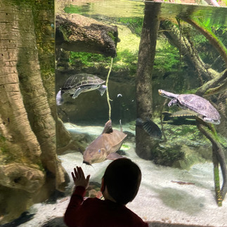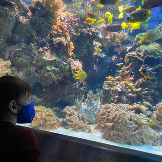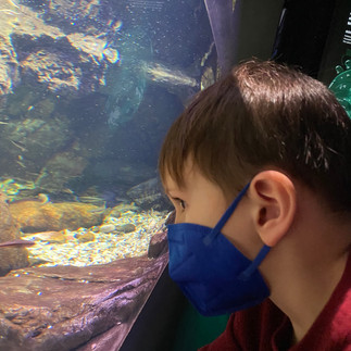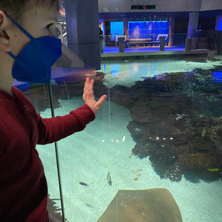 Cameron and I went up to Baltimore the following weekend. My dad was taken to John's Hopkins Hospital for spine stabilization surgery and while we couldn't visit my dad, we wanted to support my mom (his Mom-Mom) and visit with her when she wasn't at the hospital. While she was with my dad, Cameron and I went to the National Aquarium in the morning. He also did not remember going to an aquarium before, so she was very excited to see all "new" things.