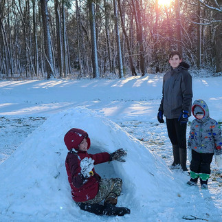 A few days after we rung in the New Year, we got our first good snow. It was the first snow that Cameron remembered. We had plenty in New York, but he didn't remember every playing in the snow. We tried to build an igloo at our house (we used his sand box top as a roof), we made snow angels and had a snowball fight. We went over to his Mom-Mom and Pop-Pops house and he built a real igloo with his cousin, Bobby and neighbor, Michael.