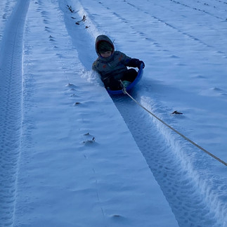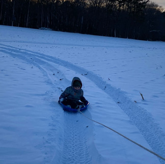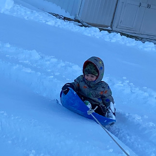 Mother Nature decided she wasn't done dumping snow on the Mid-Atlantic for January so she dropped another half a foot in our area. We built his "first ever" snowman and had more snowball fights. Our very good family friend, who we refer to as Uncle Bill, took Cameron sledding. He thought this was his first time sledding and just knew he was a daredevil. He loved falling off and "going fast".