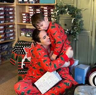 We celebrated Santa coming to our house the evening of the 29th. He was very excited to wake up in his house and see what Santa had brought him. My parents, nephew and sister-in-law spent the night as well. It was wonderful to get up and have breakfast and matching jammies.