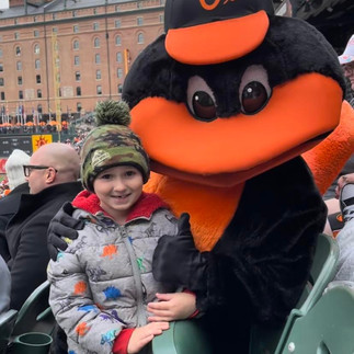 For Mother's Day I took Cameron and my parents to Cam's first professional baseball game. We headed over to Camden Yards and watched the Oriole's play the Kansas City Royals. Cameron got to meet the Bird and played on the kids corner. He was so excited he took a nap around the 5th inning!