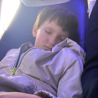 Our flight was rather uneventful. Cameron slept most of the time. After making friends with the attendants they made him a crown and gave him wings. He even got to sit in the cockpit again with the pilot, Mr. Mike.