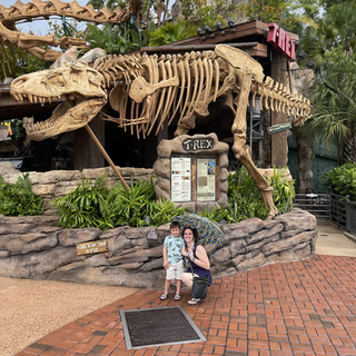 We’ve spent the last week trying to have a much fun as possible. I am so grateful for my parents for taking Cameron and I on a little vacay to one of our most favorite spots - Sanibel Island in Florida. It was a very eventful drip down (two days driving almost 100% in the rain) but we got to our first big stop Saturday. we had reservations at the T-Rex Cafe in Disney Springs in Orlando. Think of rainforest cafe but with Dinos. Cameron absolutely loved it.