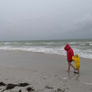 Tuesday and most of Wednesday were spent in the room as Hurricane Elsa passed. We did venture to the beach a few times when the rain and wind weren’t so crazy. Once Elsa passed we had blue sunny skies and were able to swim, collect shells and make sand castles. Little fish ended up swimming to the bottom of the deep end (8’3”) of the pool and swimming back up! it makes me sad that he worked so hard to do that and probably won’t be able to swim until November.